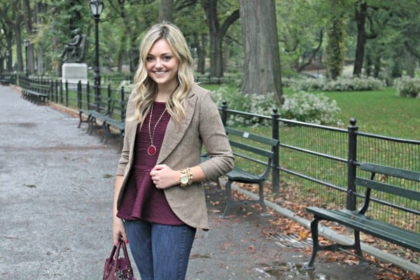 Ok, you convinced me – I was on the fence about needing yet another blazer, but I think a tan tweed one is totally in my future!! You look fabulous – I love camel and burgundy! (And I’m having a burgundy color link-up party next week on my blog if you want to join with this outfit!)