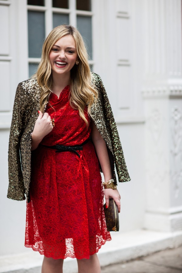 The red dress is gorgeous on you! And I love the sequin jacket!!