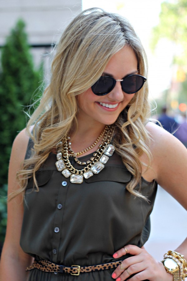 Oh my gosh. How beautiful is this dress??!? Well the whole outfit really. I love the dress (color and silhouette), but I really love how you styled it with the layered baubles and leopard belt. I think this might be one of my favorite outfits!