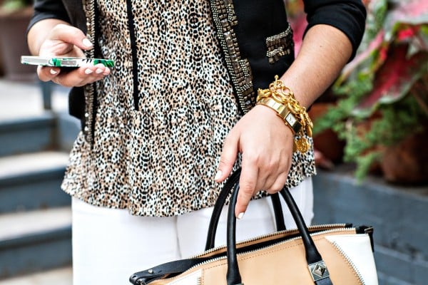 A great example of how to appropriately wear white jeans to work. So cute! I love how you paired the leopard top w/ it. And…if anyone is still subscribing to the “no white after Labor Day” rule is crazy I say…crazy! 😉