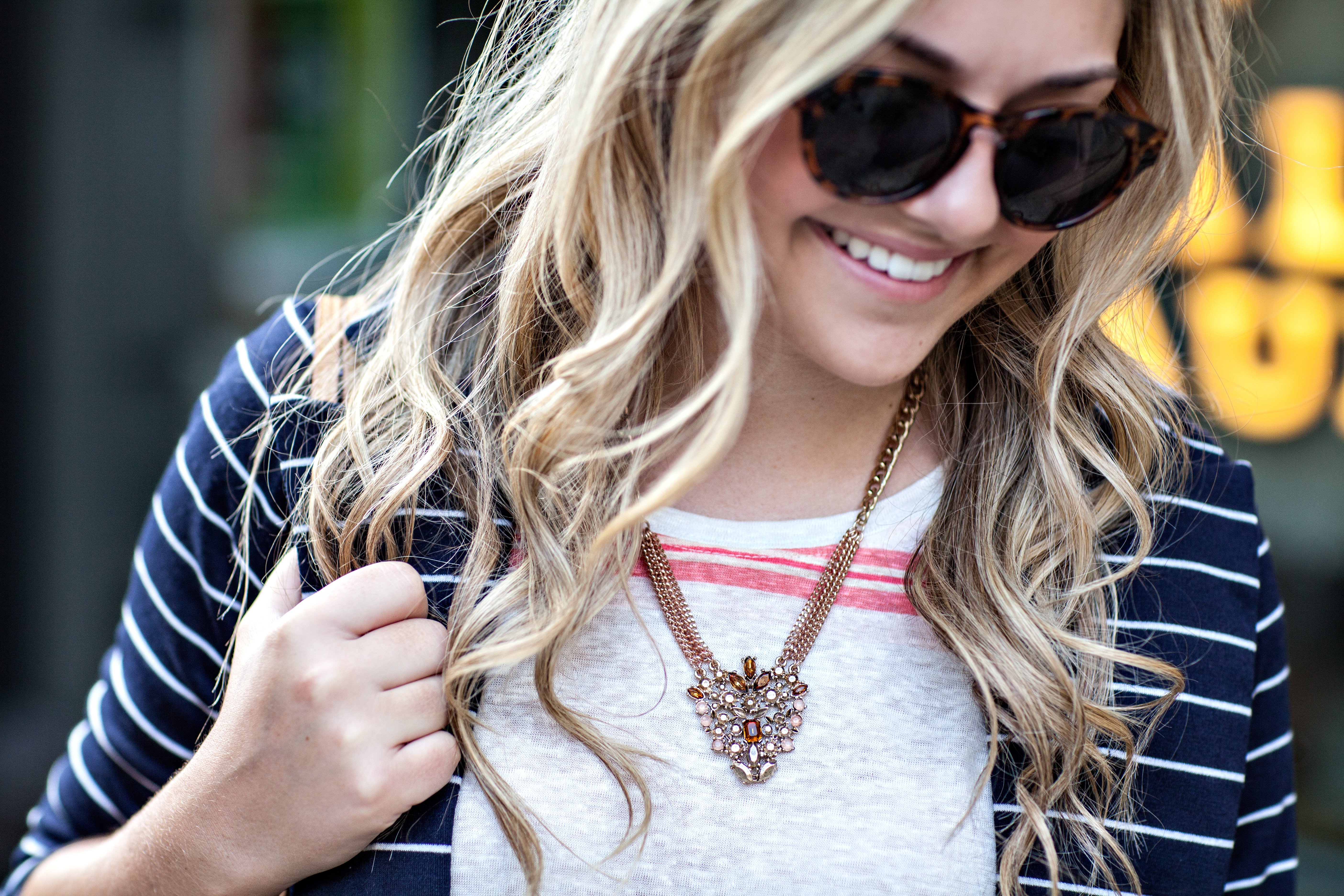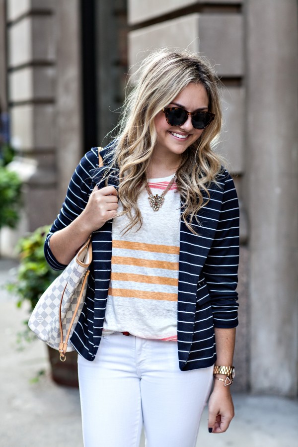 Loving the stripe on stripe action here! Both prints of course pair so beautifully with your white jeans. A great early fall look for sure! Keep on mixing those prints girl! <3 it!