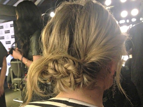 On Day 3 of NYFW, I swung by the TRESemmé’s Trend Bar & Salon at the tents and talked to TRESemmé stylist, Tyler Laswell, to get some ideas for quick & easy styles that are perfect for Fashion Week! He showed me one way to get that messy I-didn’t-try-very-hard up-do and it truly only took about 10 minutes.