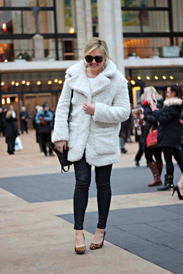 Outfit Details: Topshop Teddy Coat (similar) | Sincerely Jules Tee | AG Jeans | J.Crew Pumps | 3.1 Phillip Lim Bag | Karen Walker Sunglasses | Capwell + Co Earrings | Capwell + Co Cuff