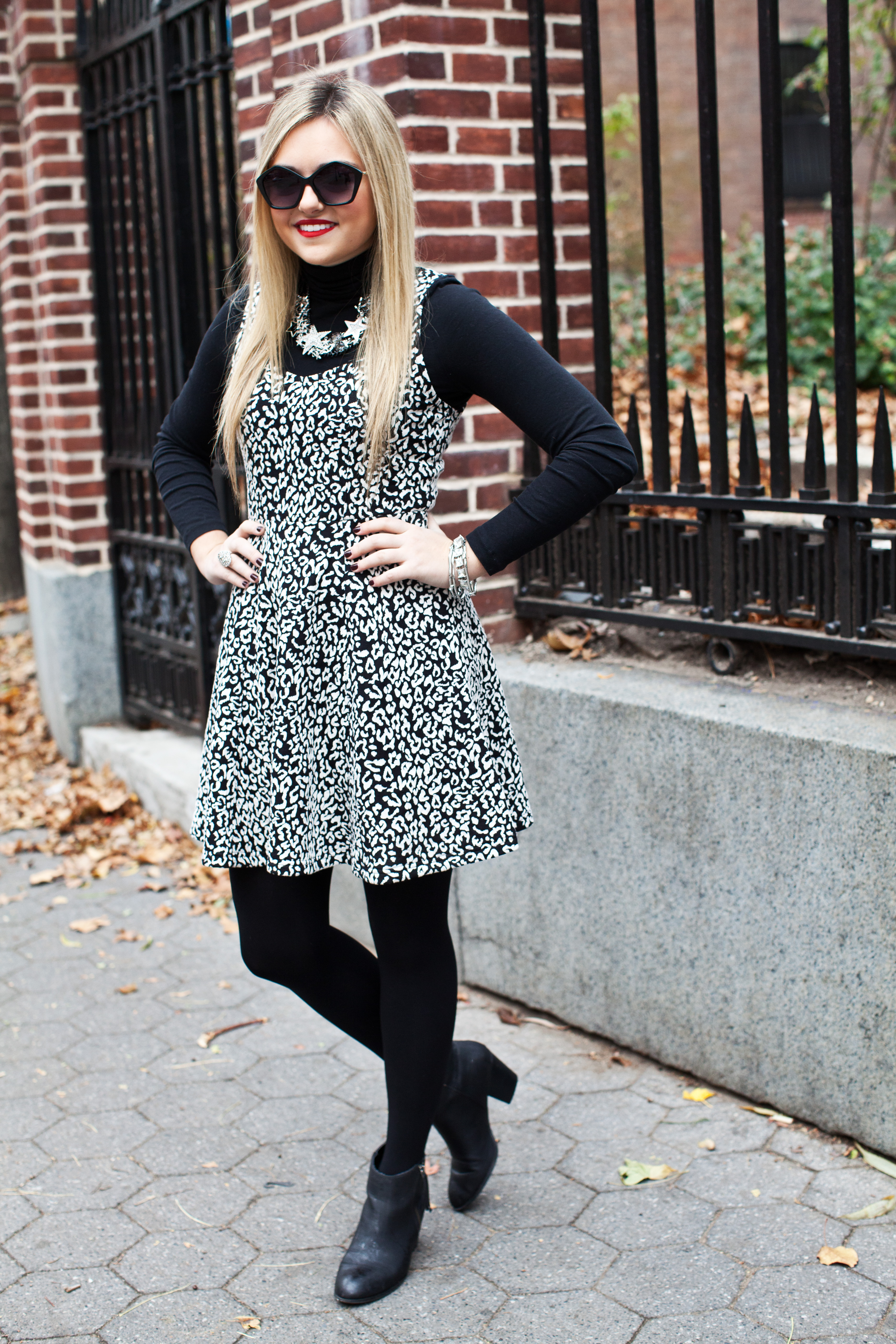 I love wearing turtlenecks under my dresses! It’s the perfect way to transition your warmer weather dresses. Love the leopard print!