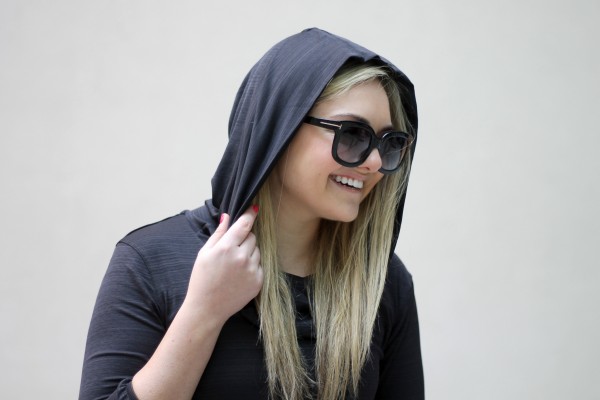 As for the other products I’m wearing here, they’re all so comfy that I want to wear them whenever I’m lounging around my apartment and not just when I’m headed to the gym. I can’t say enough good things about this 3/4 sleeve top! The cowl neck is so fun that it doubles as a hood and the material is unbelievably soft. I wouldn’t necessarily do heavy cardio in this top (I prefer tank tops when I’m getting my sweat on), but it’s a great top to throw on when you’re going to-and-from the gym or for a less intense workout, like meeting a friend for a long walk through the park.