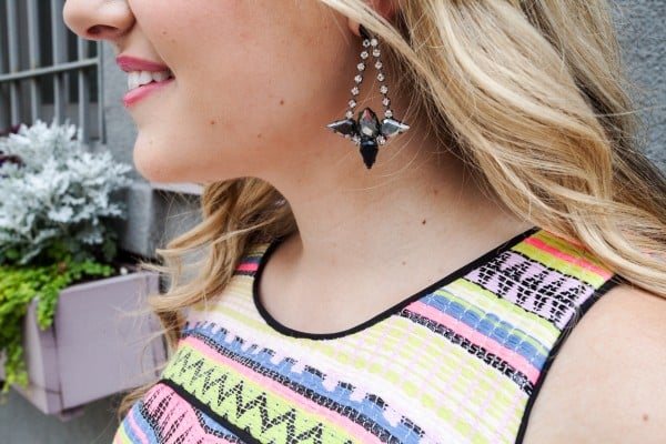 I wore this outfit to the Capwell + Co Summer Soiree a few weeks ago. Perfect for a hot night on a fun rooftop! Since the dress does a lot of talking, I kept the rest of my look pretty simple with basic black accessories. I’m so in love with this print from Milly! I remember when I first saw the jacket on Instagram and immediately knew that I would be buying at least one piece from the collection.. It’s just such a fun print! (I have the bikini, too!)