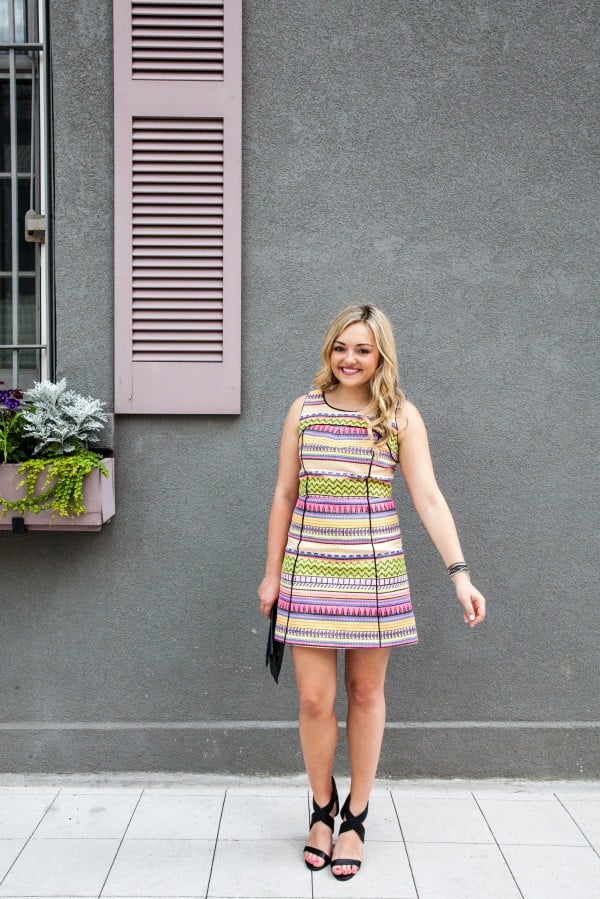 This dress is so cute on you! Love the colorful pattern!